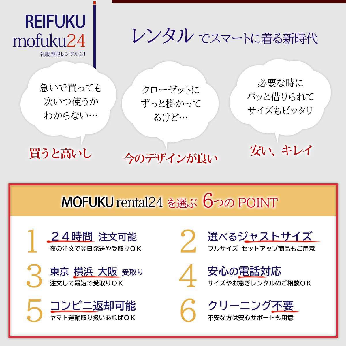 レンタルのメリット、デメリットはあるけれど、何年かに一度しか着ない喪服だから、今のサイズでスマートにレンタルをご提案致します。